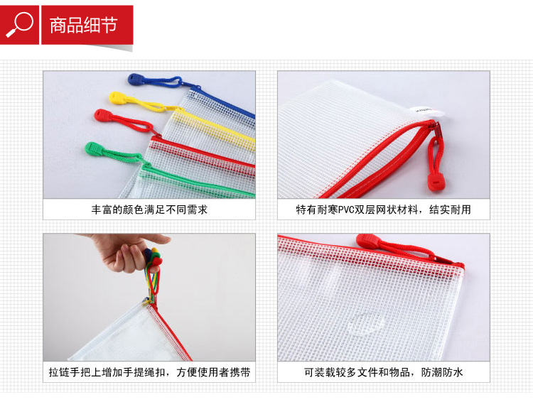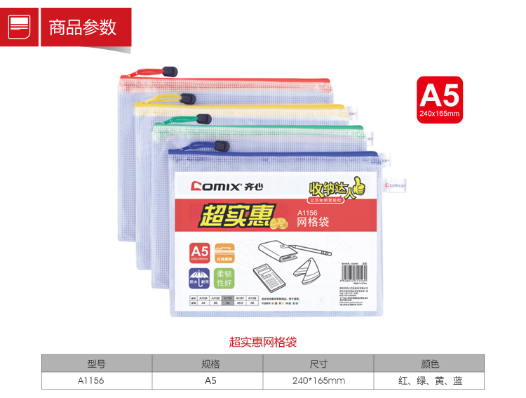 商品名稱:齊心A1156 A5 PVC防潮網(wǎng)格拉鏈袋 基本單位:個(gè)