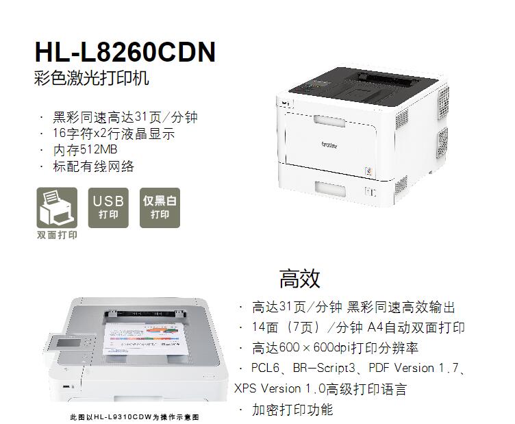 兄弟打印機 HL-L8260CDN 彩色激光打印機 單位:臺