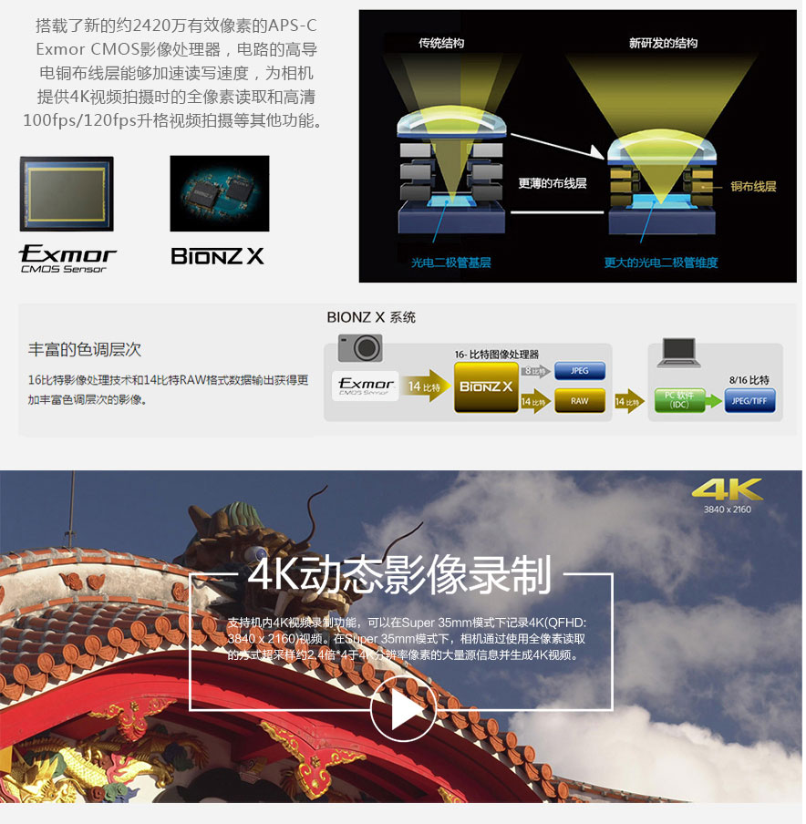 16-50MM 黑色 鎂合金機(jī)身 4D對焦 4K視頻 A6300Α6300