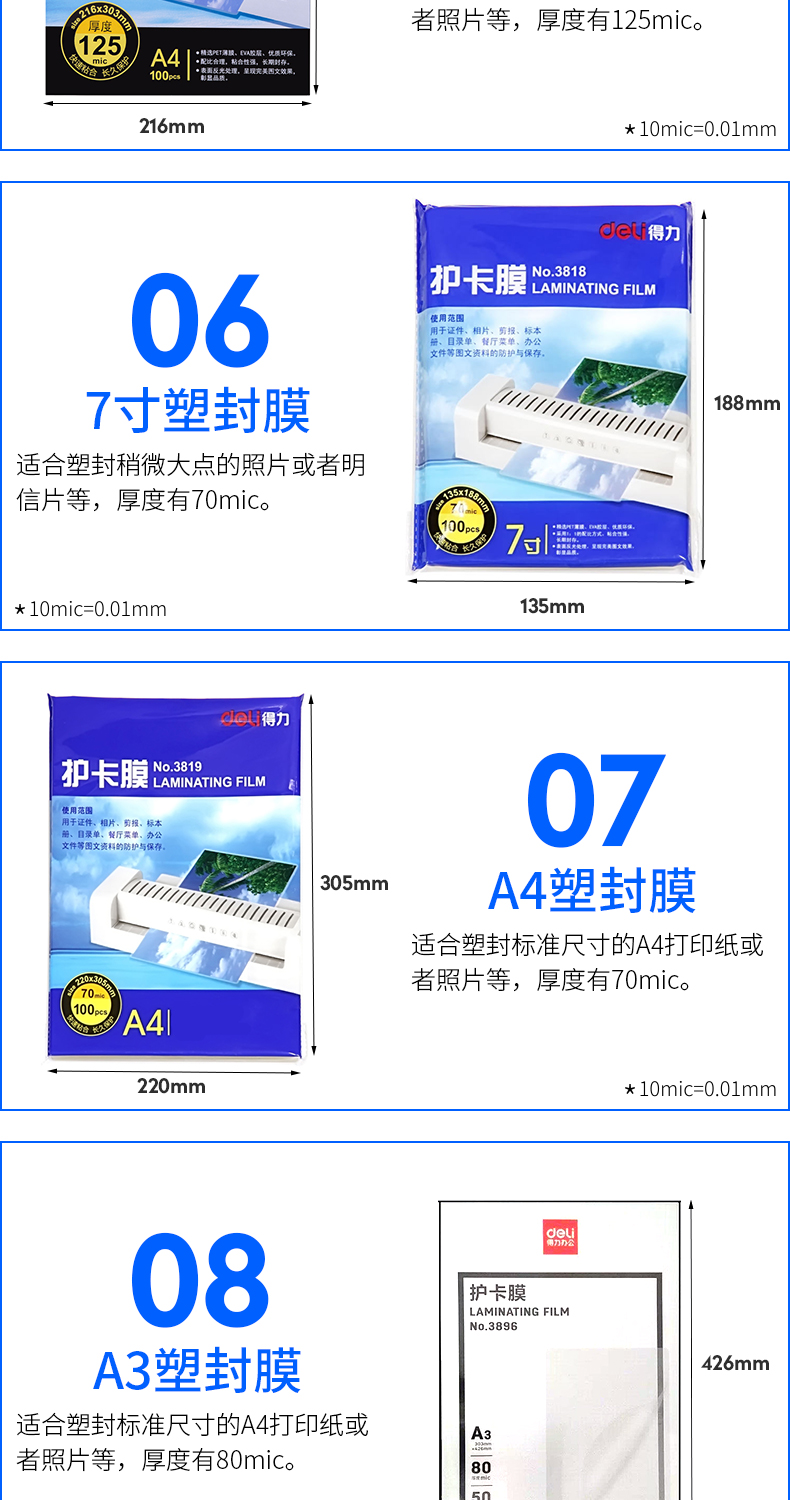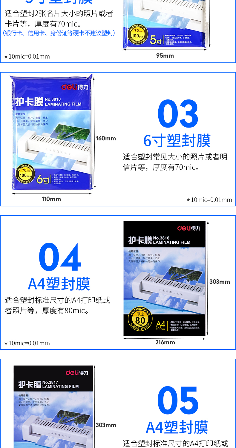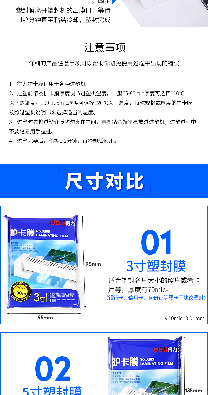 得力塑封膜 3809 95*135mm 5寸 100張/包 單位:包