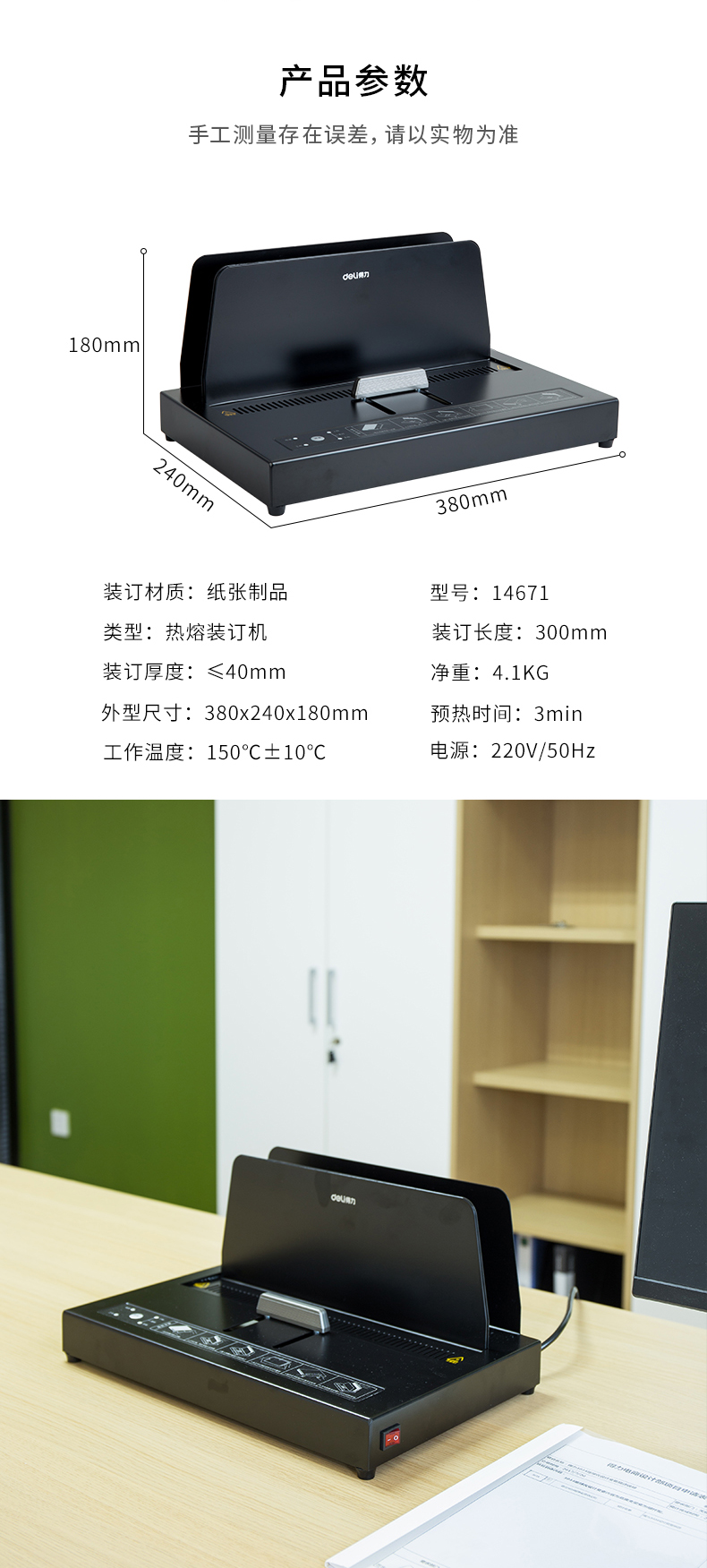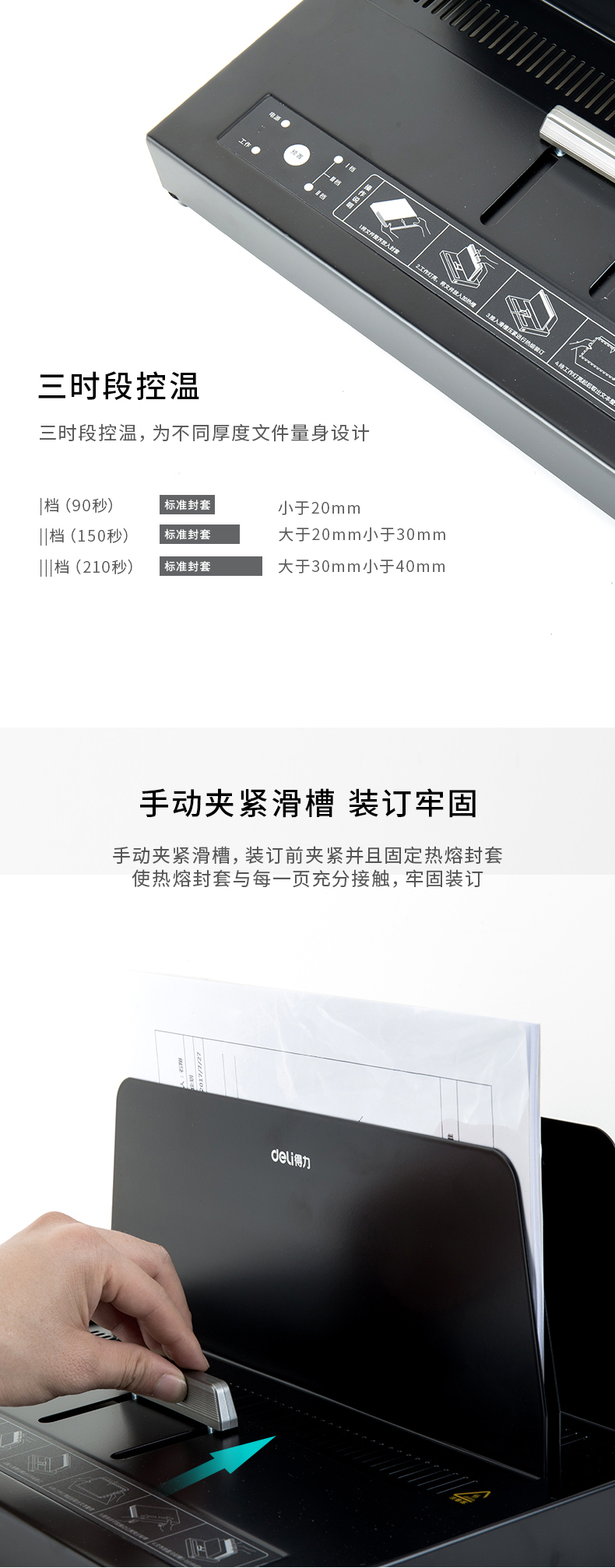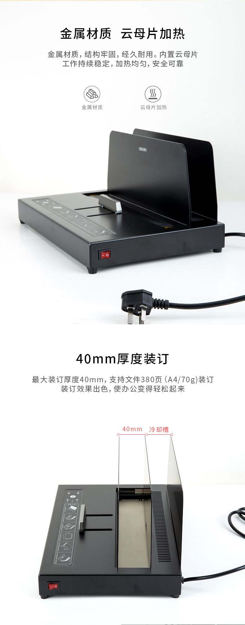 得力熱熔裝訂機(jī) 14671合同/標(biāo)書/文件膠裝機(jī)(裝訂厚度40mm) 單位:臺(tái)