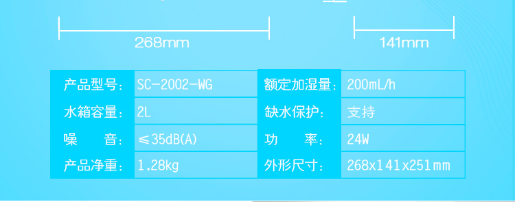 靜音迷你辦公室臥室家用帶香薰盒加濕孕婦嬰兒可用 SC-2002-WG 橢圓白