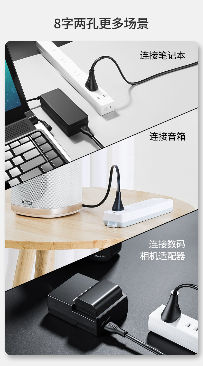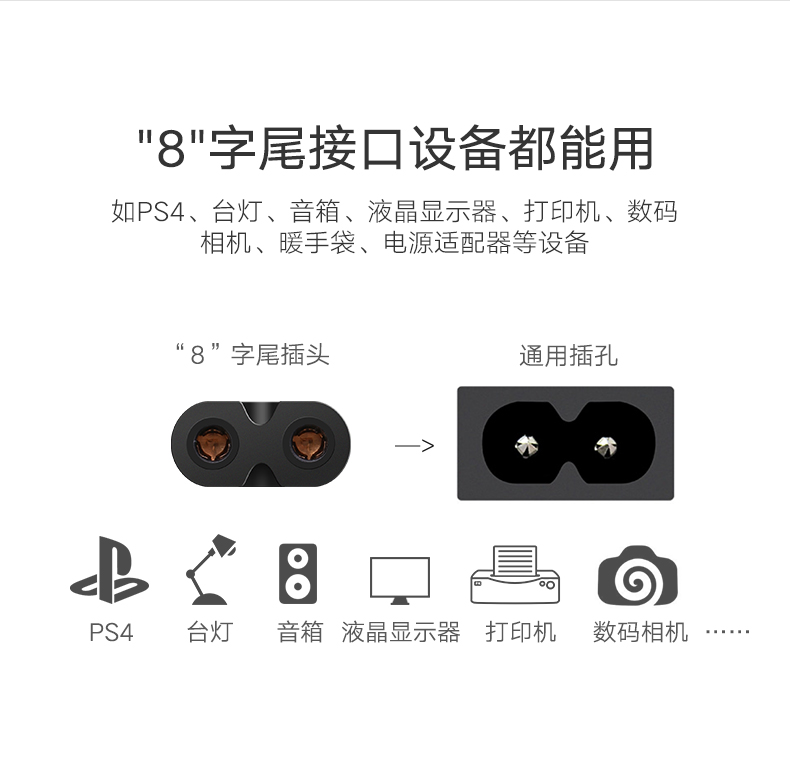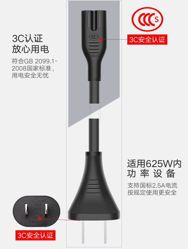 綠聯(lián) CD159 國(guó)標(biāo)兩插8字電源連接線(xiàn) 八字尾雙孔 2米 黑色 單位:個(gè)