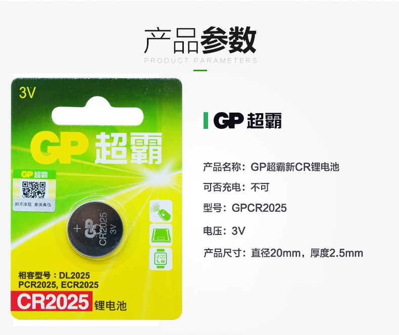 超霸電池 CR2025紐扣電池2粒 單位:卡
