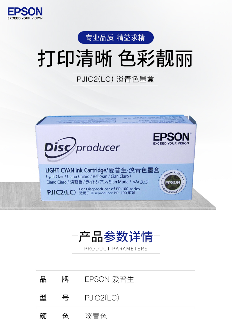 愛(ài)普生墨盒PJIC2 淡青色墨盒 (適用PP-100III/100N/50II系列光盤(pán)印刷刻錄機(jī)) 單位:支