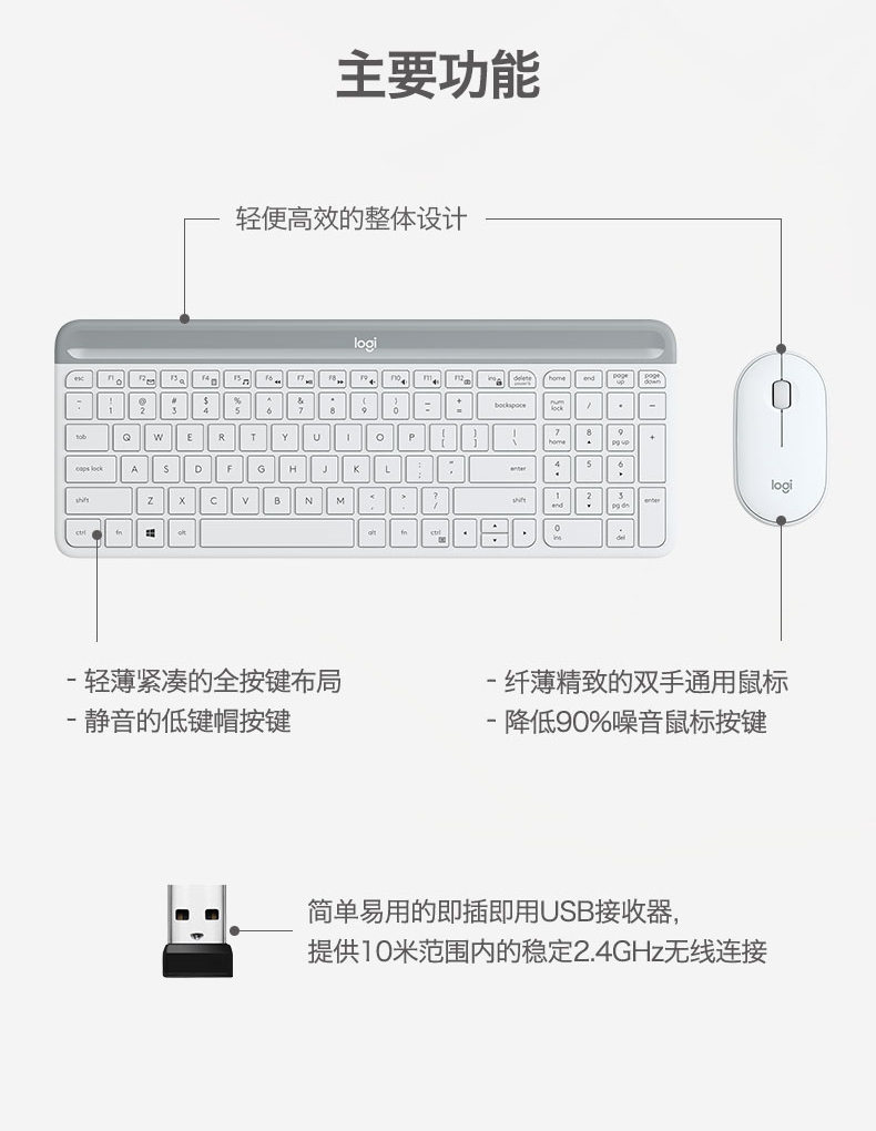 羅技鍵鼠套裝 MK470 無(wú)線鍵鼠套裝 灰色 單位:套