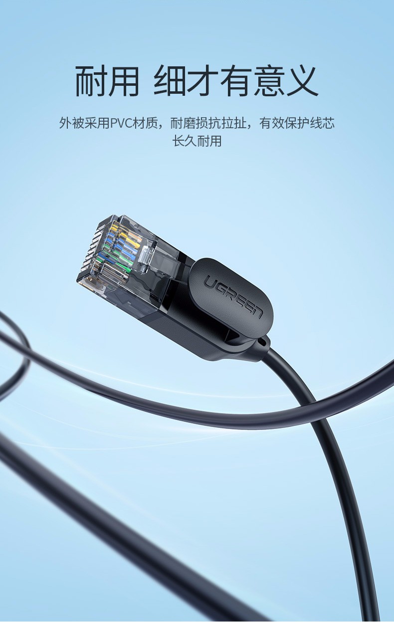 綠聯(lián)網(wǎng)線 NW122 超六類萬兆網(wǎng)線細線 CAT6A類純銅鍍金八芯雙絞非屏蔽網(wǎng)絡(luò)跳線 2米 單位:根