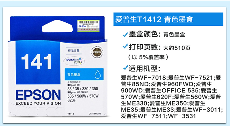 愛普生墨盒T1414 黃色墨盒 適用me33 ME35 ME330 ME350 620F 單位:支