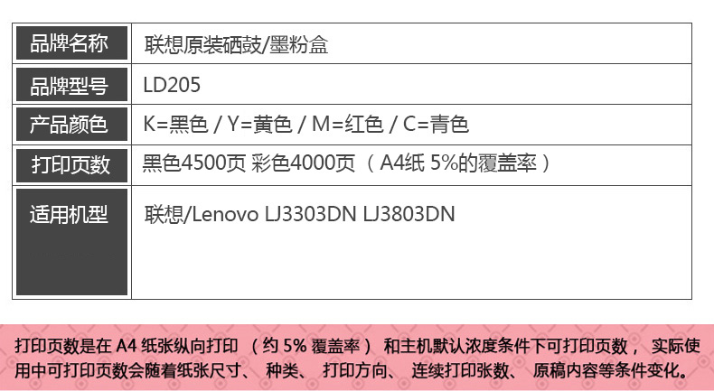 聯(lián)想硒鼓 LD205 青色 適用于CS2010DW/CF2090DWA打印機(jī) 單位:支
