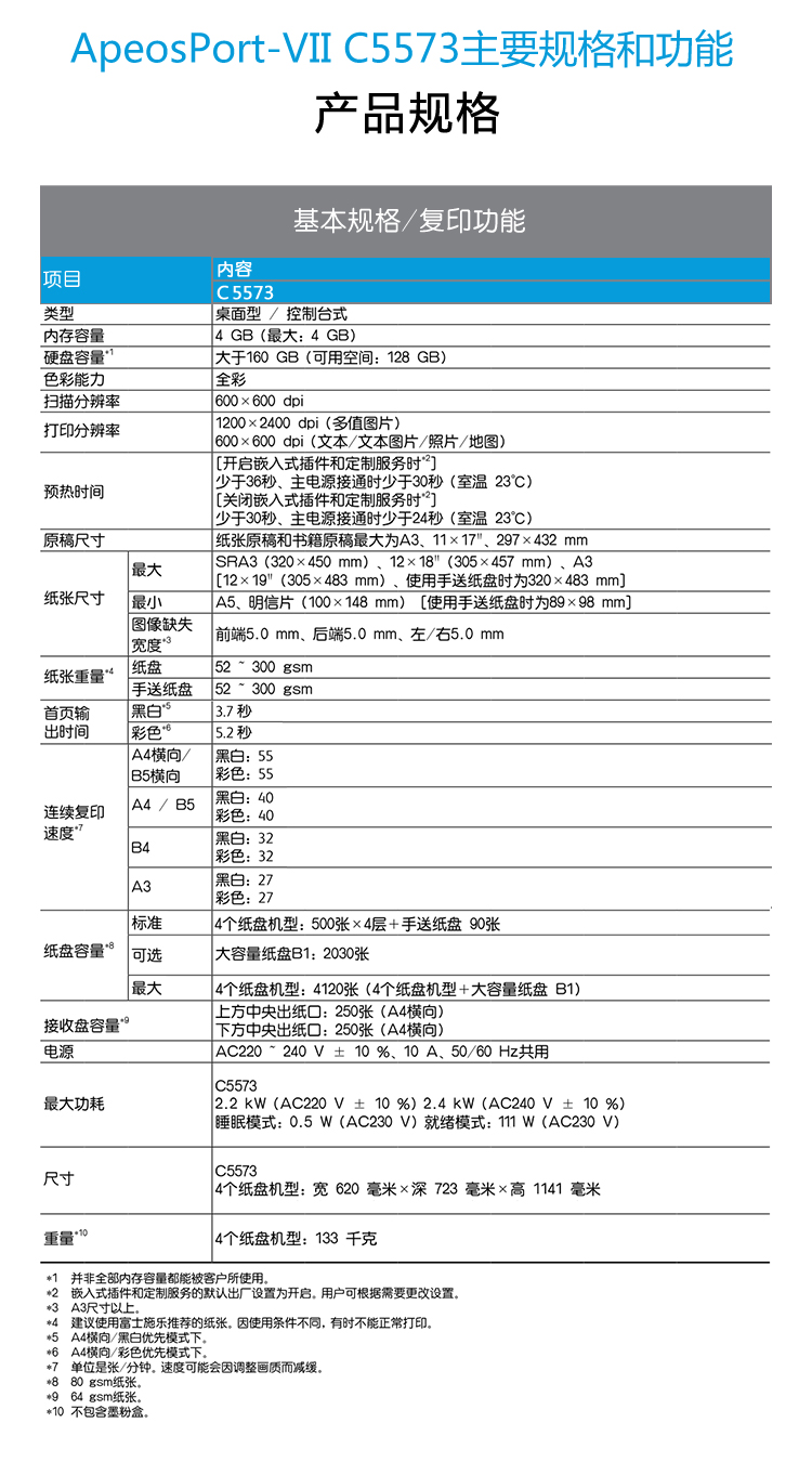 富士施樂復(fù)印機(jī) ApeosPort-VII C5573 CPS SC 彩色激光復(fù)印機(jī) 單位:臺(tái)