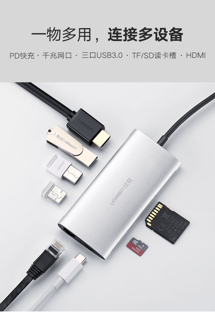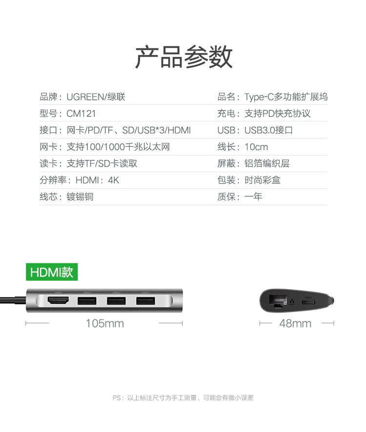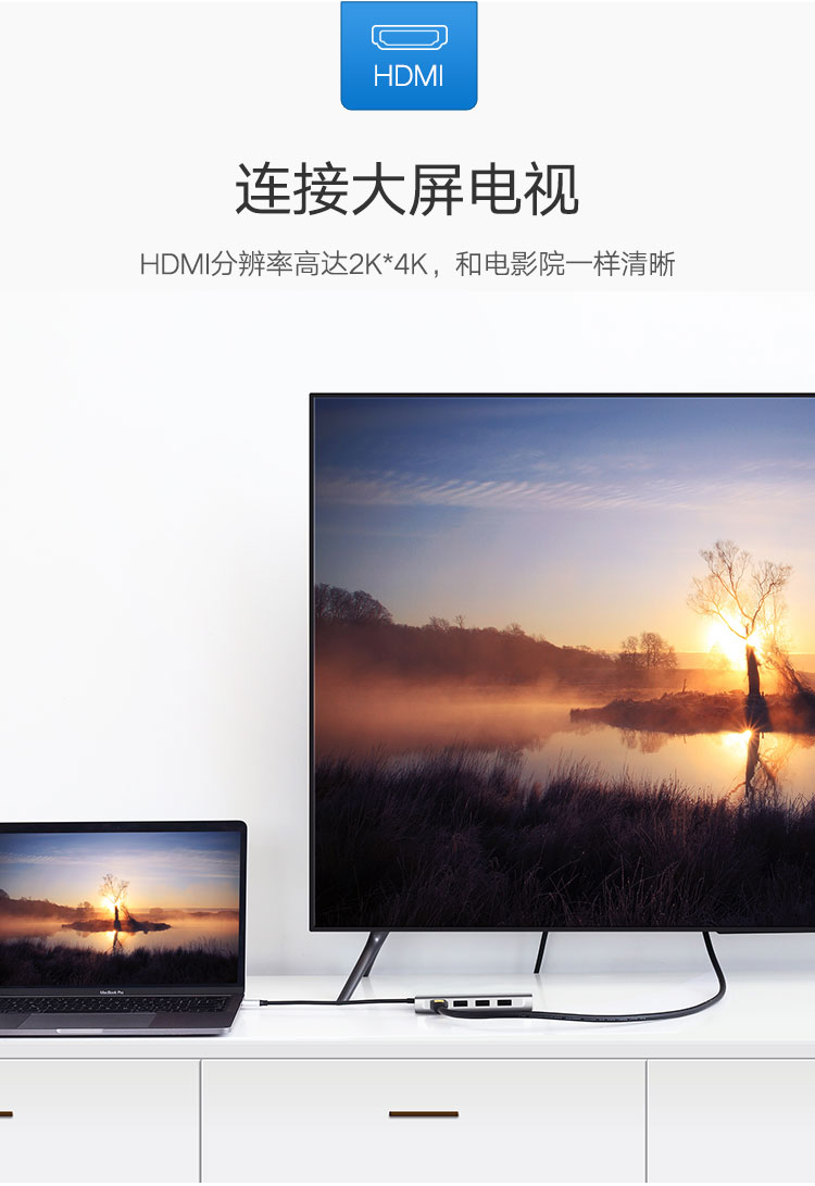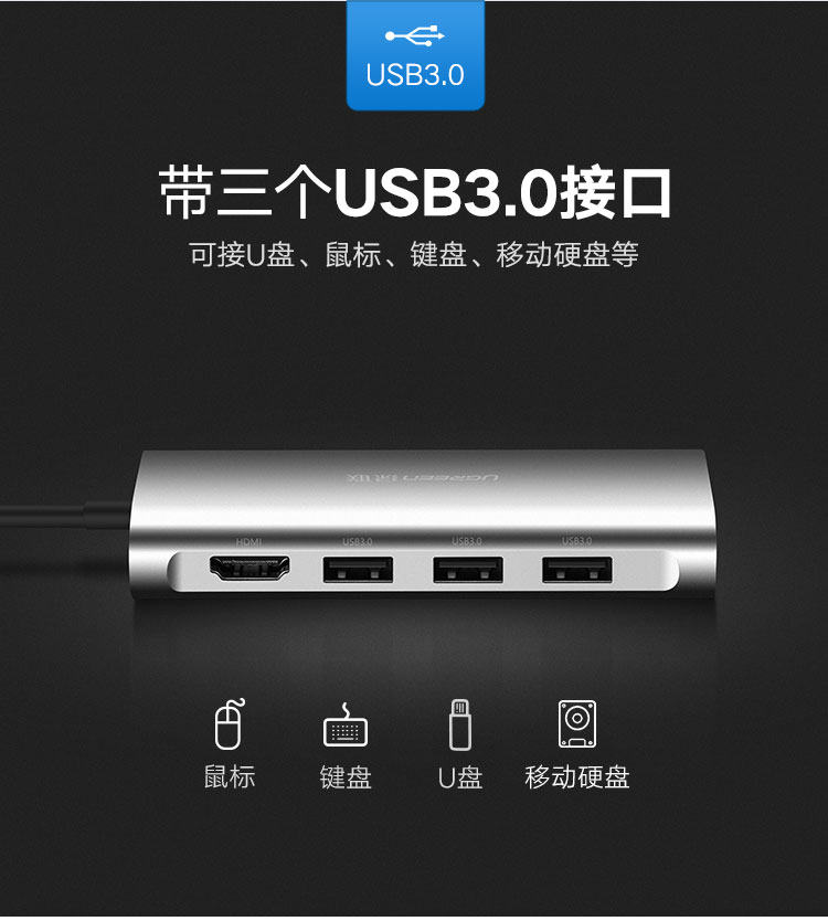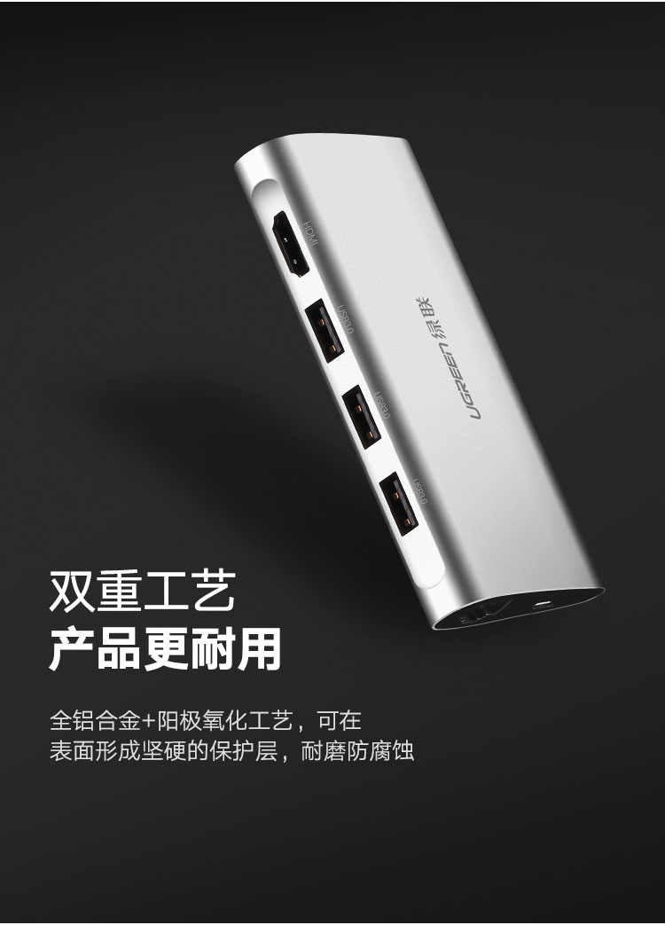 綠聯(lián) CM121 Type-C擴(kuò)展塢 通用蘋果為設(shè)備 USB-C轉(zhuǎn)HDMI轉(zhuǎn)換器 銀色 單個(gè)裝