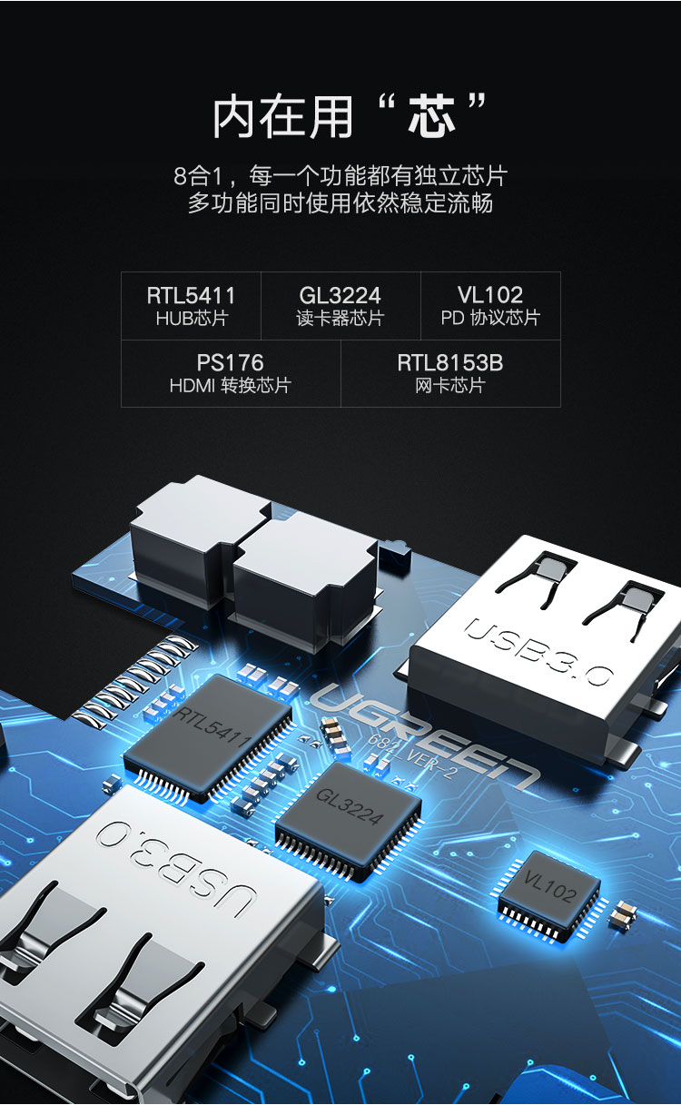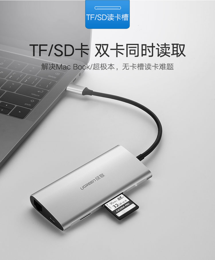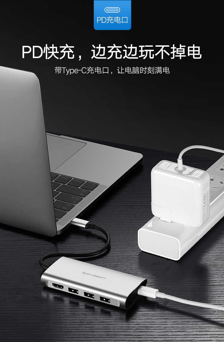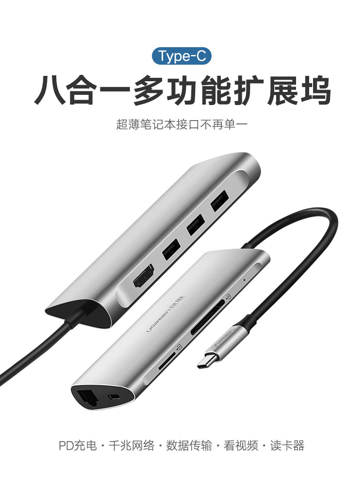 綠聯(lián) CM121 Type-C擴(kuò)展塢 通用蘋果為設(shè)備 USB-C轉(zhuǎn)HDMI轉(zhuǎn)換器 銀色 單個(gè)裝