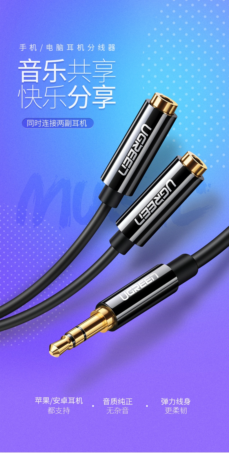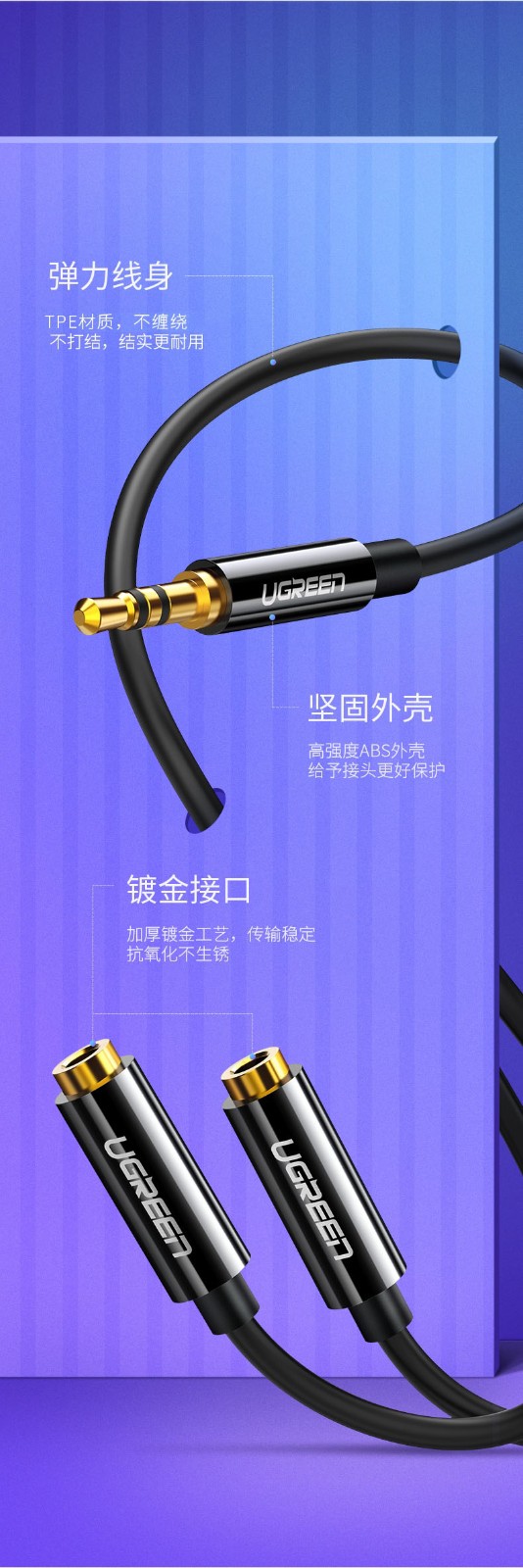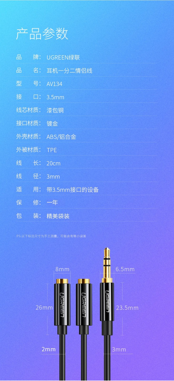 綠聯(lián) AV134 3.5mm一分二音頻線1分2公對母情侶耳機(jī)線AUX分線器轉(zhuǎn)接頭 白色 0.25米 單位:根