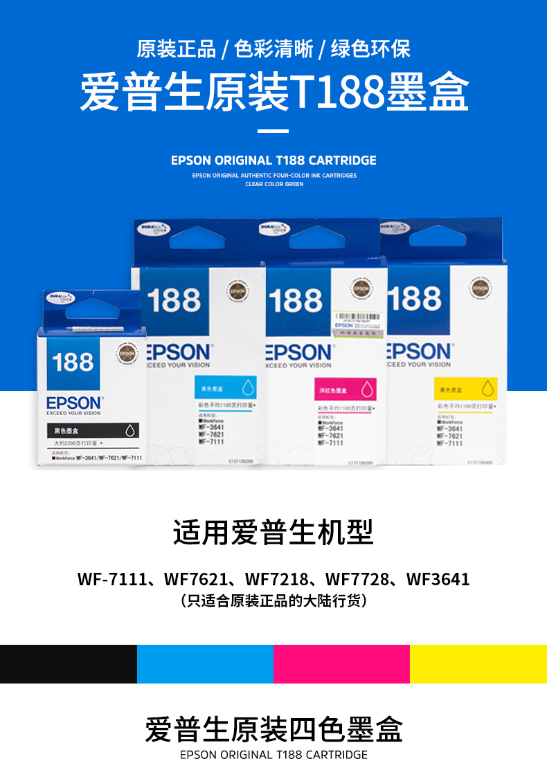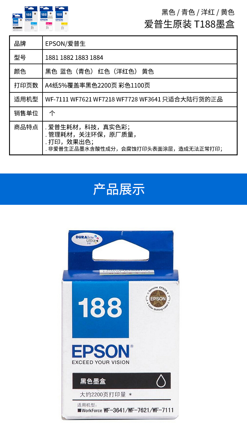 愛普生墨盒 T1882 青色墨盒 適用WF-3641/7111/7621/7728/7218