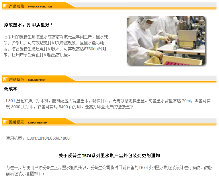 愛普生墨盒 T6745 淡青色墨水 適用于L801 單位:支
