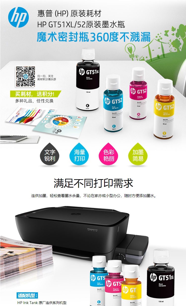 惠普硒鼓 GT52 黃色墨水瓶 適用:HP Tank518 511 519 418 419 310 318 單位:支