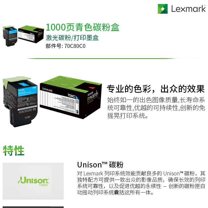 利盟墨粉 70C80C0 藍(lán)色 適用CS/310/410/510dn機(jī)型(約1000頁(yè)) 單位:支