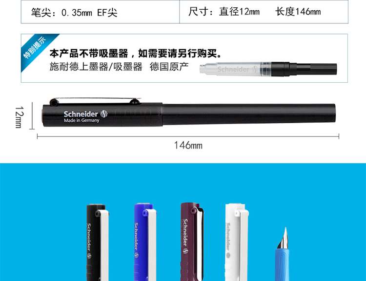 施耐德鋼筆 BK406 辦公簽字水筆特細EF尖 藍色 單位:支