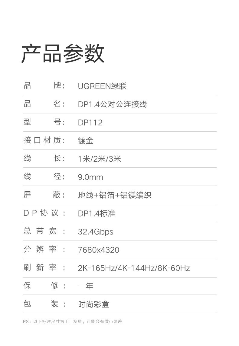 綠聯(lián) DP112 DP線 8K高清DP公對(duì)公 接顯示器視頻線 3米 單個(gè)裝