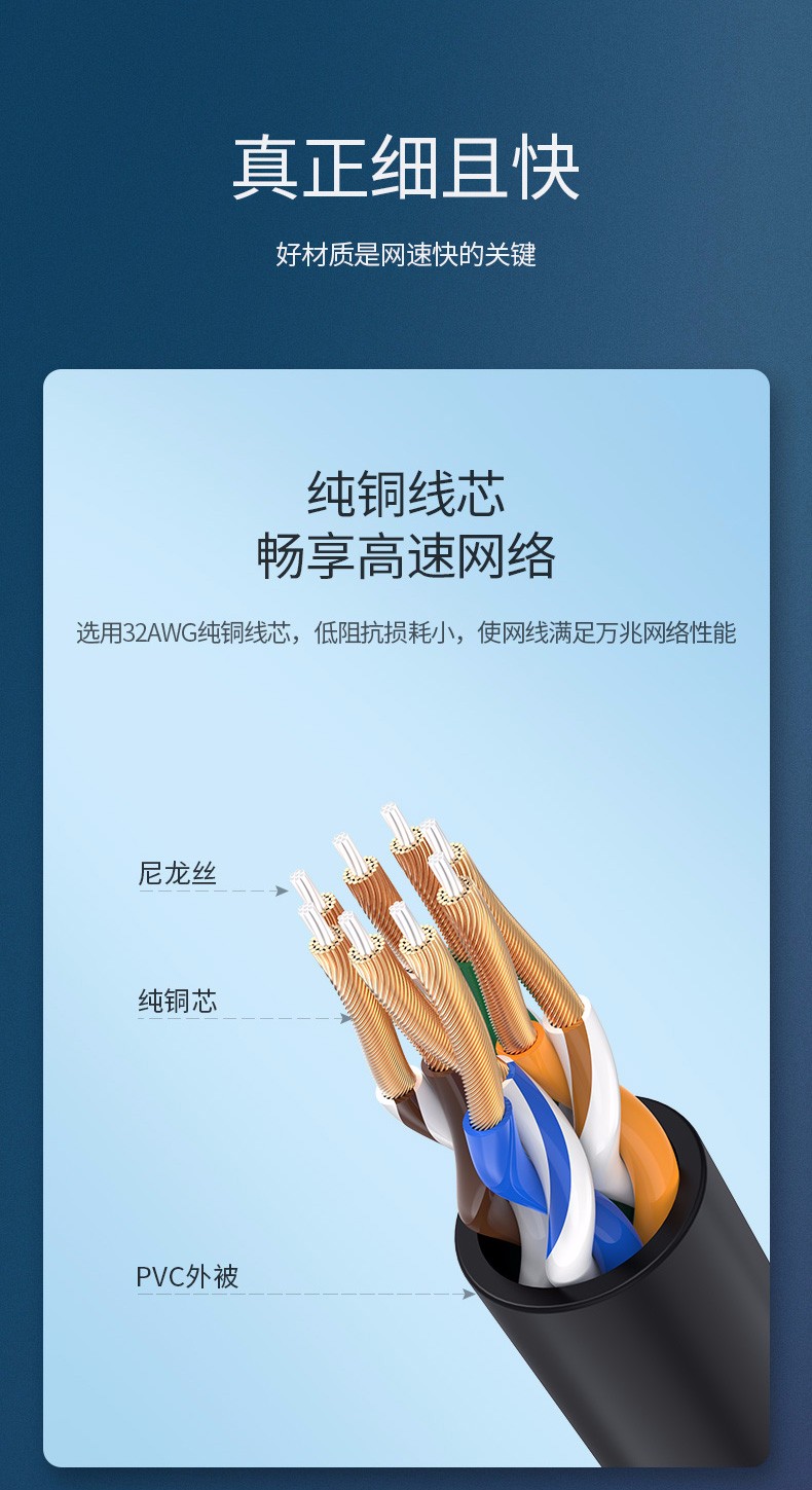 綠聯(lián) NW122 超六類(lèi)萬(wàn)兆網(wǎng)線(xiàn)細(xì)線(xiàn) CAT6A類(lèi)純銅鍍金八芯雙絞非屏蔽網(wǎng)絡(luò)跳線(xiàn) 家用電腦寬帶高速成品網(wǎng)絡(luò)連接線(xiàn) 1.5米 黑色 單個(gè)裝