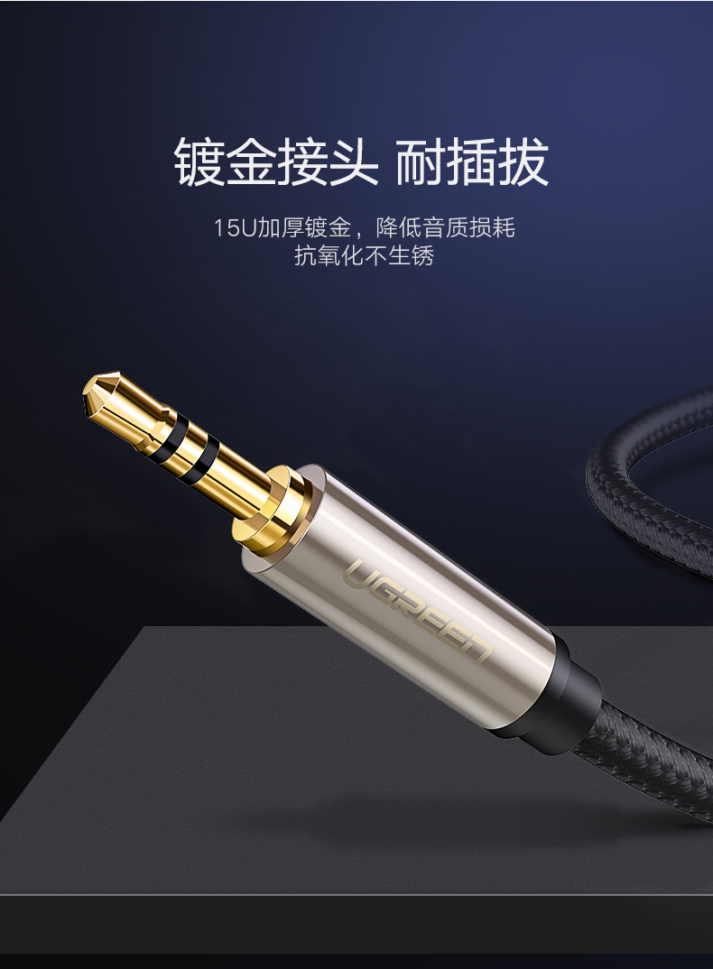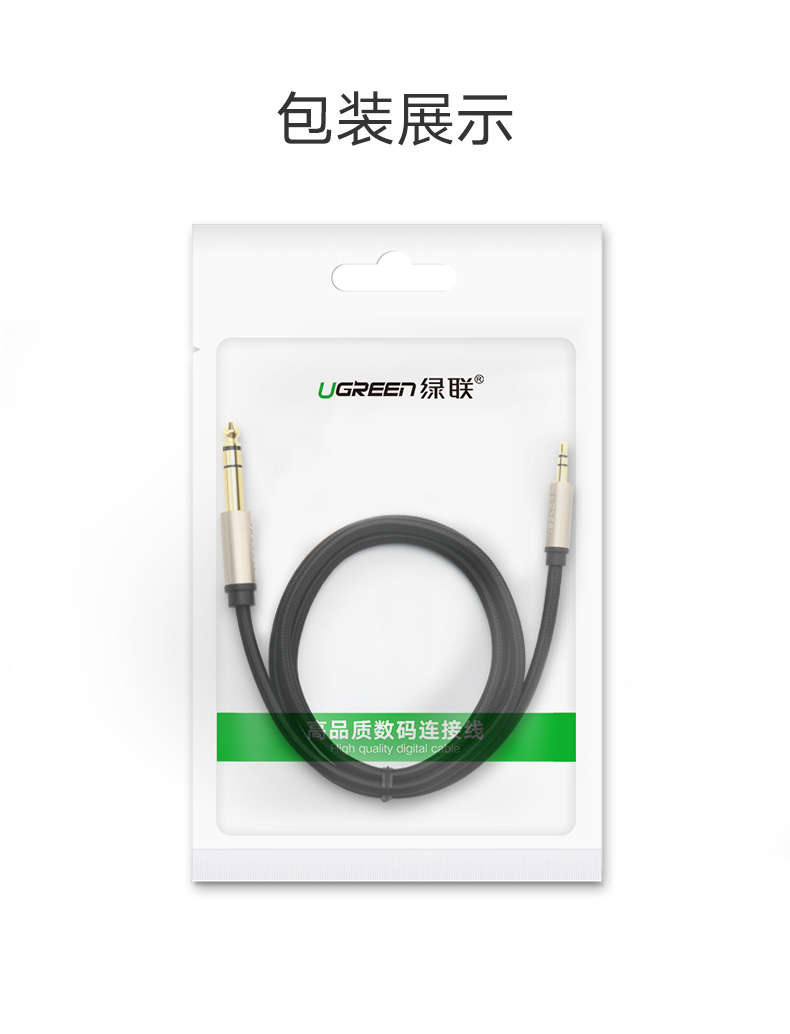 綠聯(lián) AV127 3.5mm轉(zhuǎn)6.5mm公對公音頻線 手機筆記本電腦音響箱連接線 6.35功放調(diào)音臺電吉他轉(zhuǎn)換線 棉網(wǎng)編織 2米 黑色 單個裝