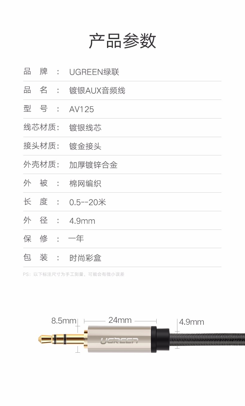 綠聯(lián) AV125 鍍銀AUX車用音頻線 3.5mm 公對(duì)公車載連接轉(zhuǎn)換線 專業(yè)發(fā)燒級(jí)AUX音頻線 12米 黑色 單個(gè)裝