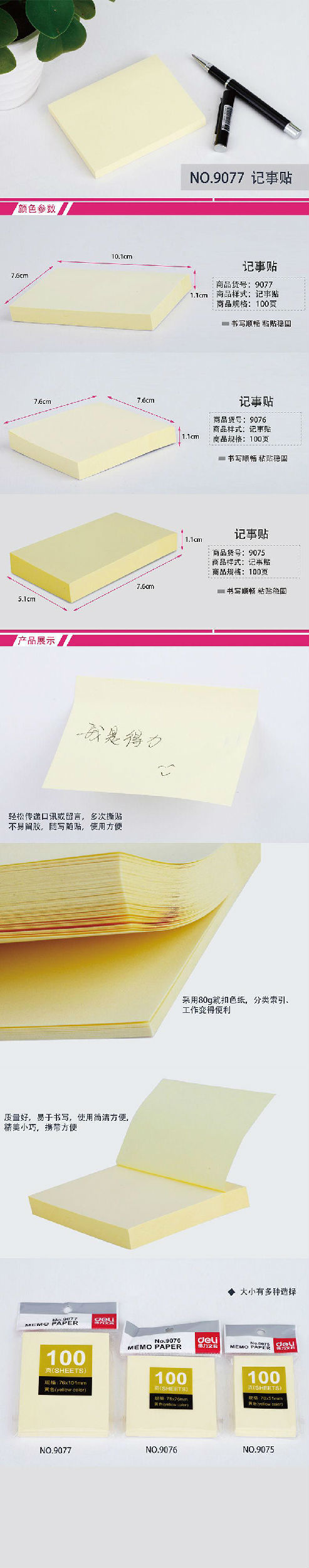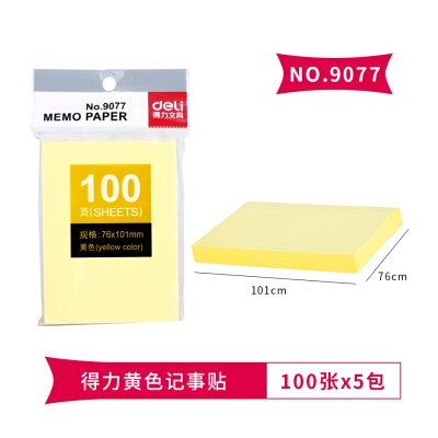 得力(deli)9077 創(chuàng)意便利貼便簽紙本小本子記事本大便條紙 單包裝 淡黃(76*101mm)5本裝