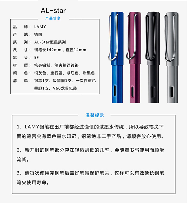 凌美鋼筆簽字筆Al-star恒星商務(wù)辦公EF筆尖(龍骨盒套裝帶吸墨器)