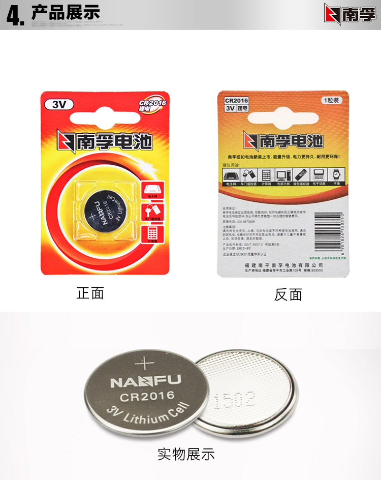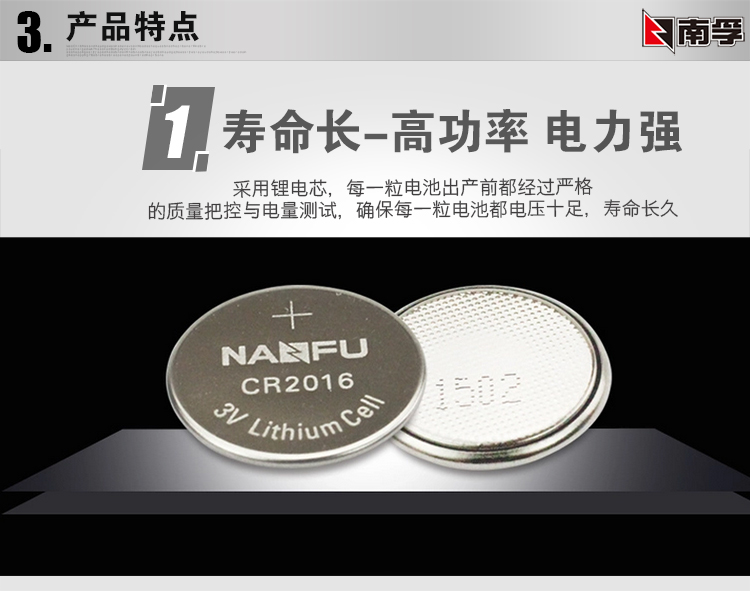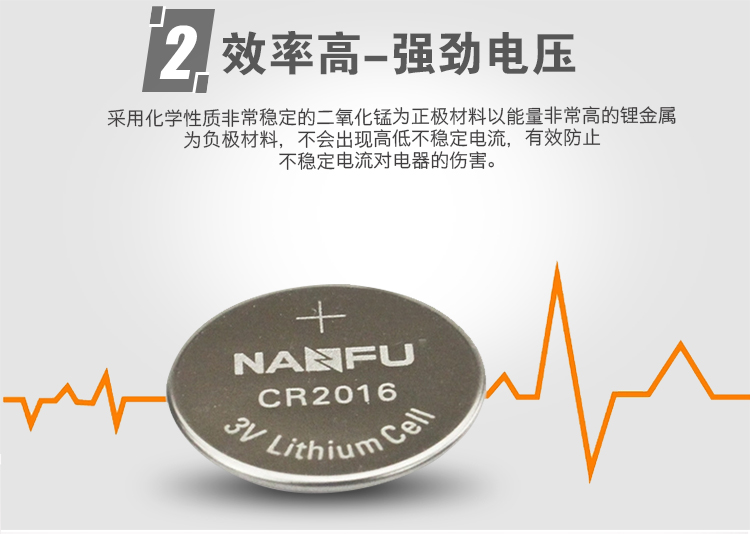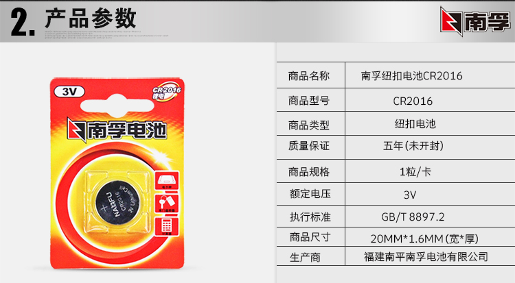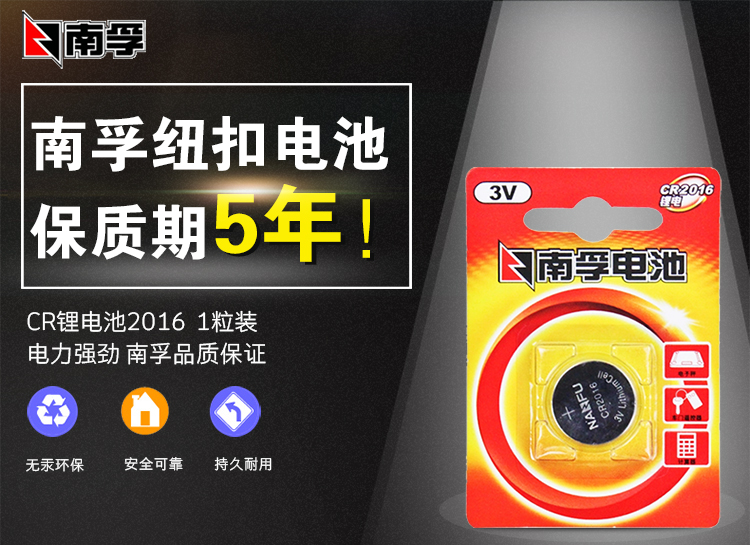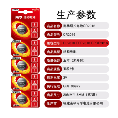 南孚(NANFU) CR2016 紐扣電池2粒 3V 鋰電池 適用豐田比亞迪奔馳景逸等汽車鑰匙 手表電池/主板/遙控器等用