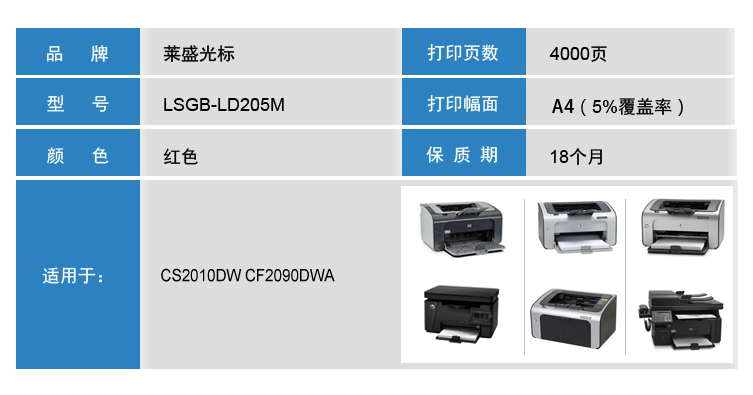 萊盛光標(biāo) LSGB-LD205M 紅色硒鼓 適用聯(lián)想 CS2010DW CF2090DWA