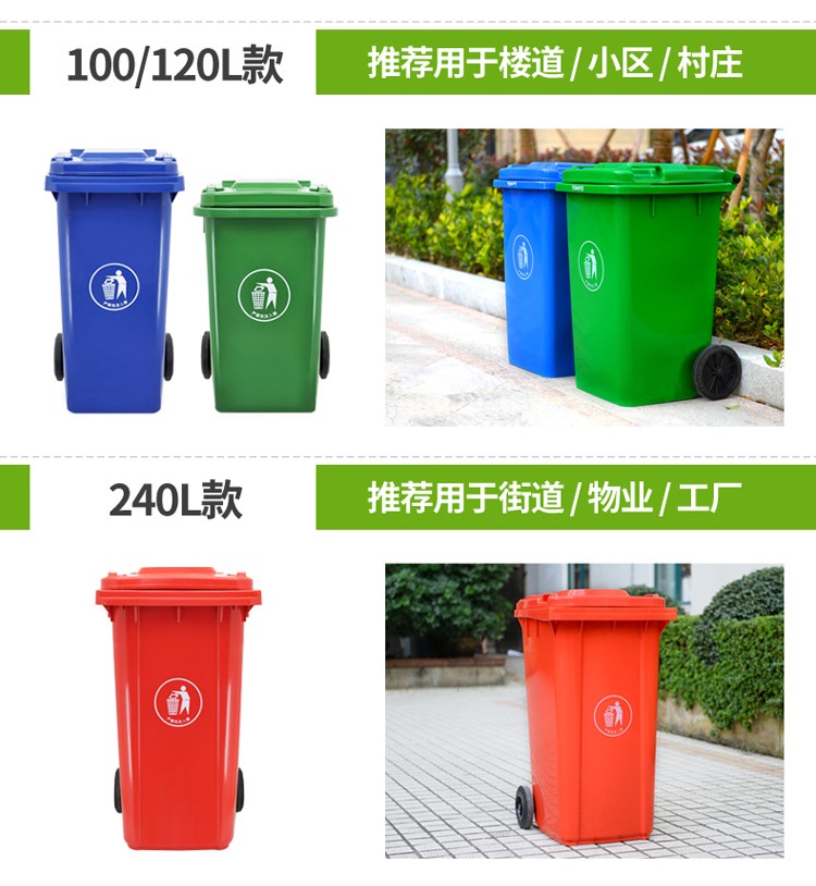 蘭詩 100L帶輪 黑色 干垃圾桶 物業(yè)環(huán)衛(wèi)垃圾分類商用帶蓋分類垃圾桶果皮箱 單個裝