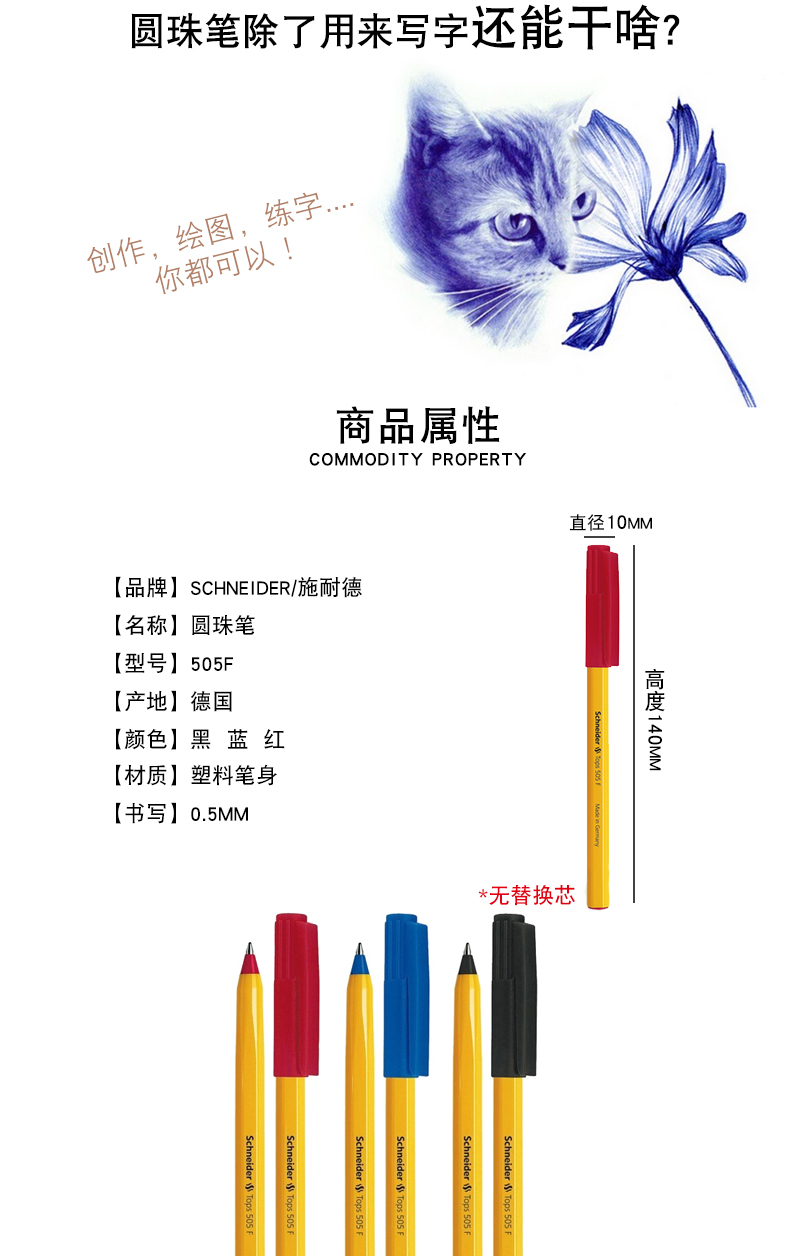施耐德(schneider)505F 0.5MM圓珠筆 藍(lán)色 單支裝