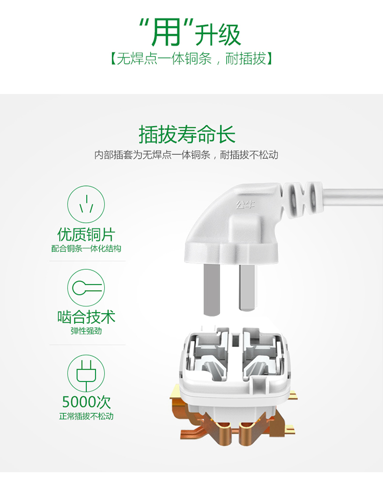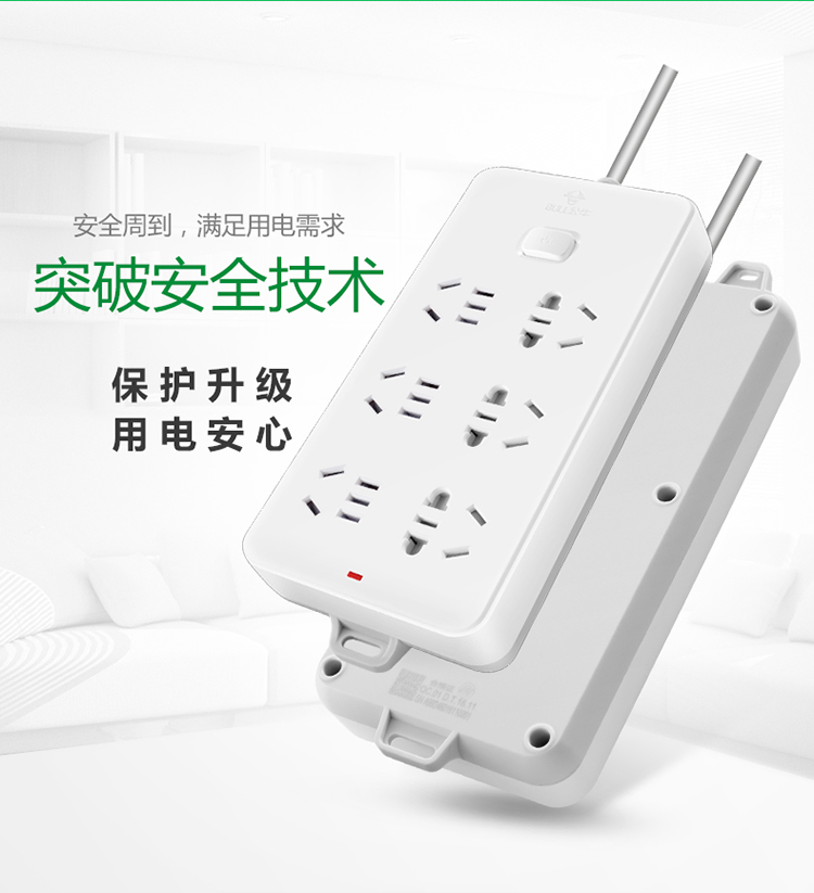 公牛(BULL) GN-109K 新國標插座/插線板/插排/排插/接線板/拖線板 6位總控全長 6位5米