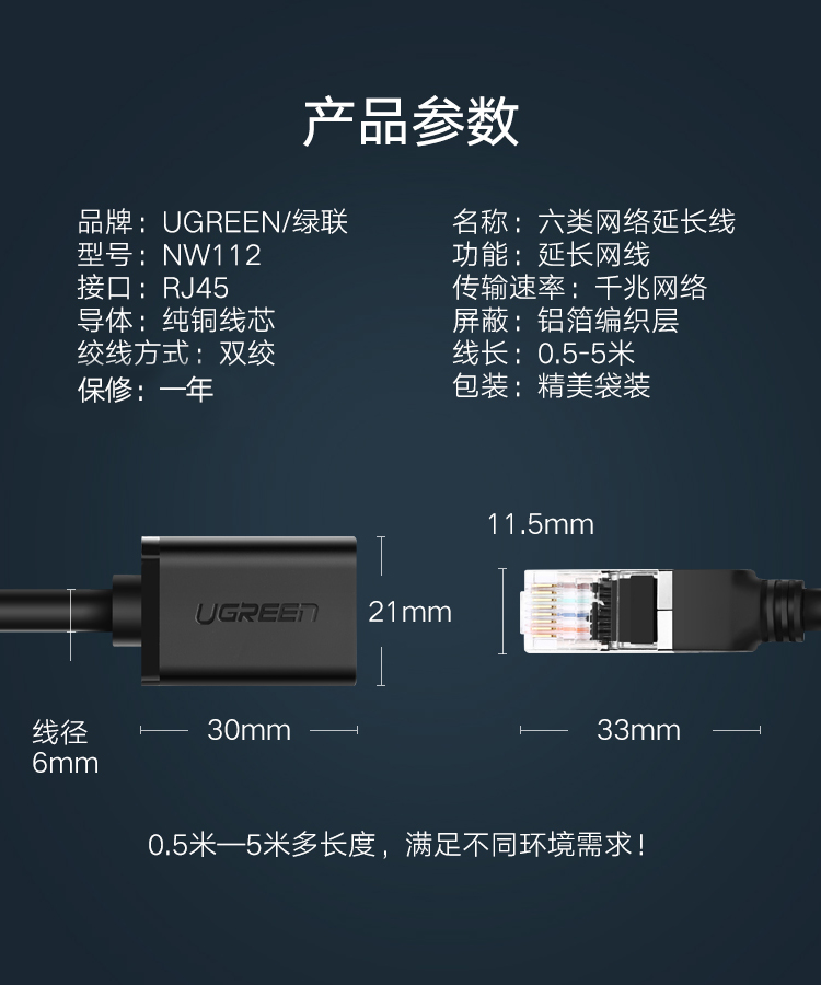 綠聯(lián) NW112 RJ45網(wǎng)線延長(zhǎng)線 六類cat6類網(wǎng)線網(wǎng)口接頭延長(zhǎng)器 千兆網(wǎng)絡(luò)寬帶接口連接線 純銅雙絞線 2米 黑色 單個(gè)裝
