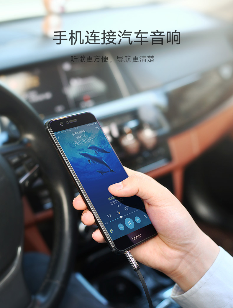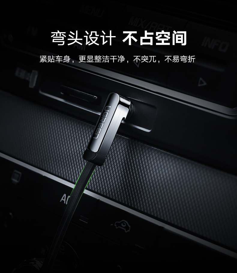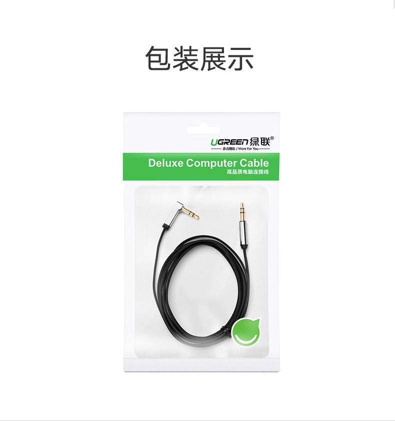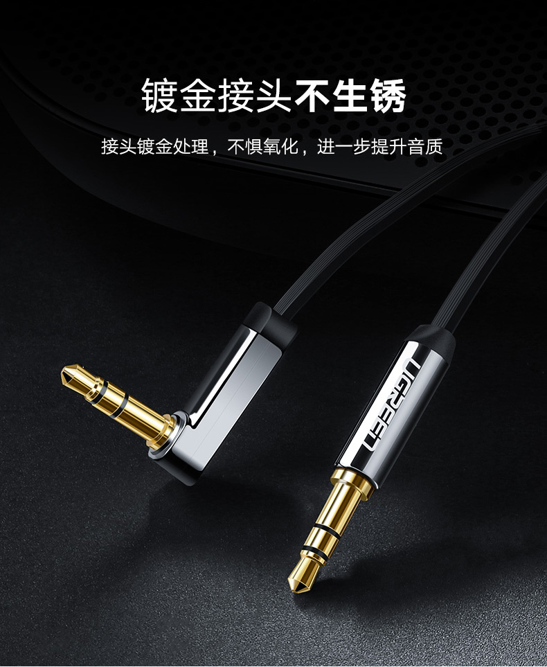 綠聯(lián) AV119 AUX車載音頻線 扁線 手機(jī)、MP3/4接音箱音頻線 黑色直頭對彎頭90度 1米 黑色 單個(gè)裝