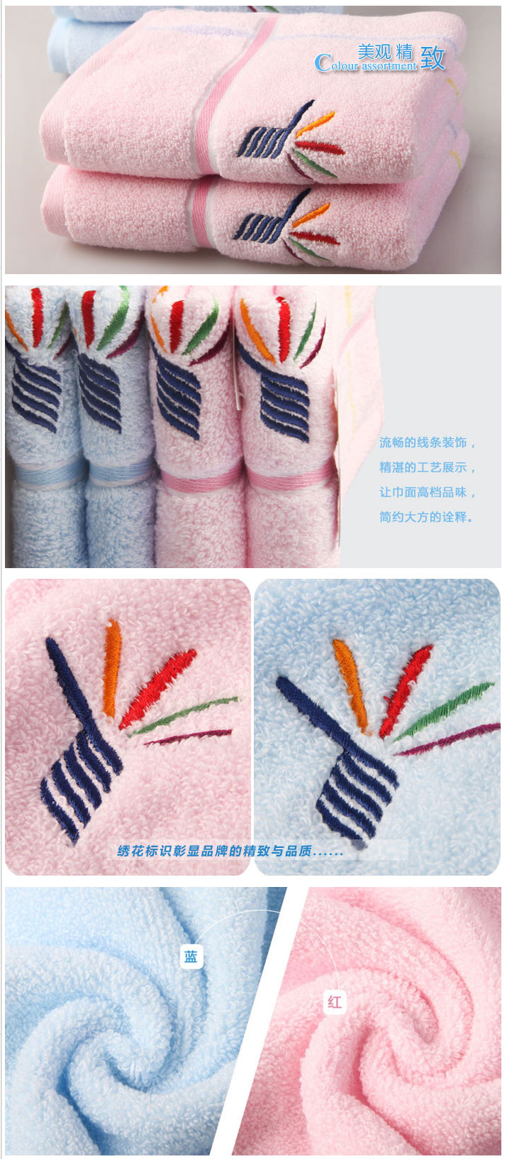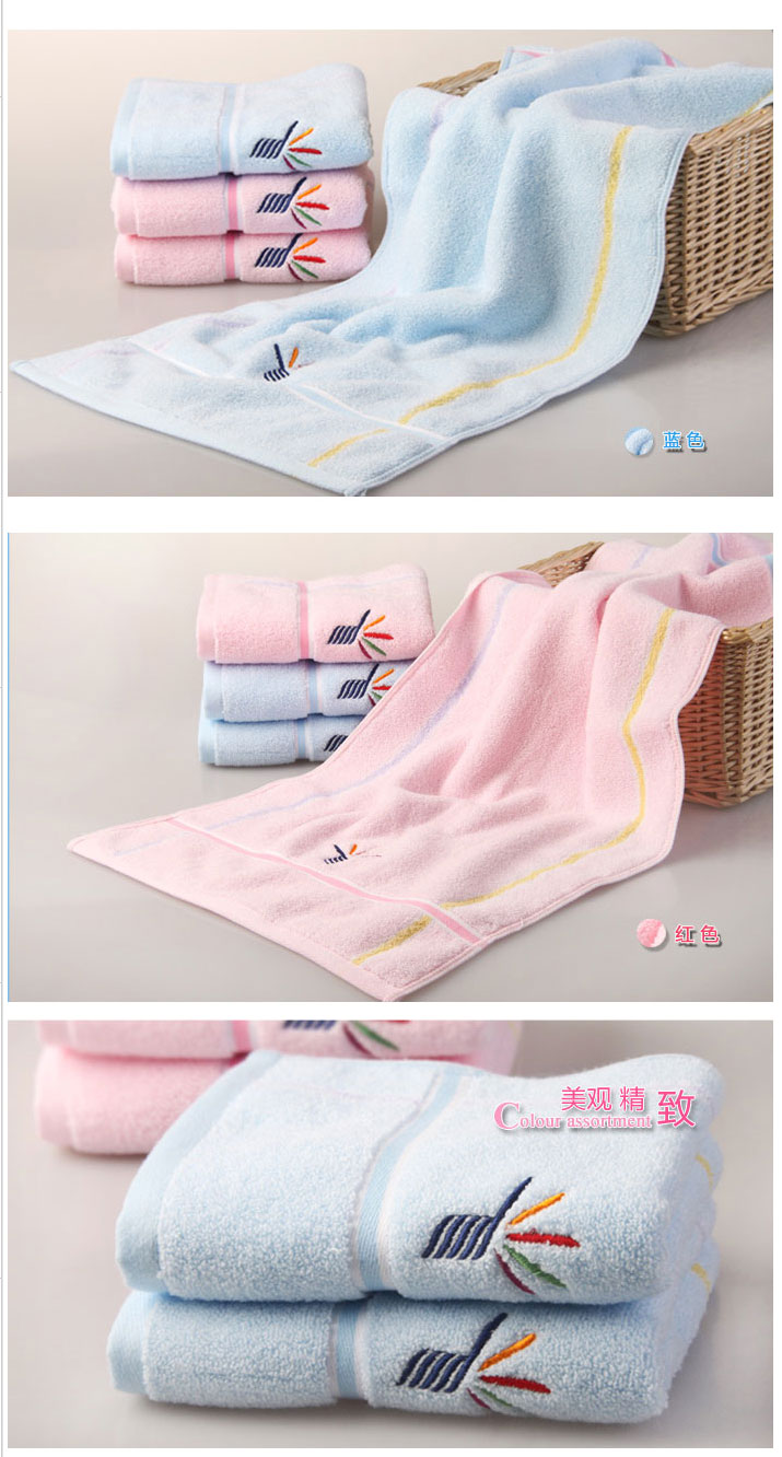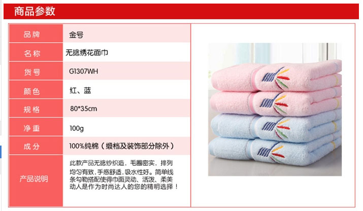 金號毛巾 1307WH無捻紗繡花加厚柔軟面巾藍(lán)色 80*35cm 單位:條