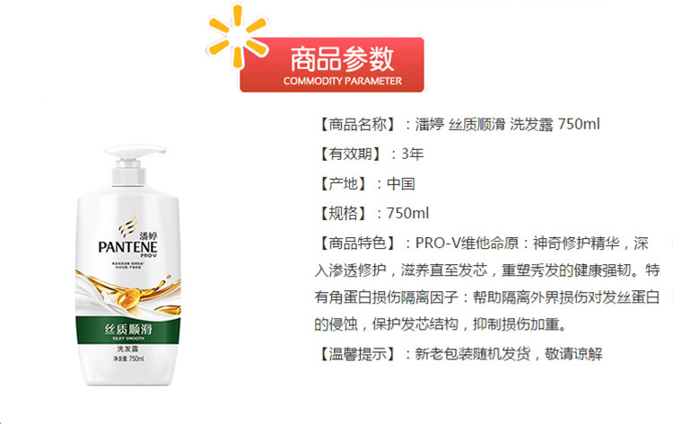 潘婷洗發(fā)水 絲質(zhì)順滑 750g 單位:瓶