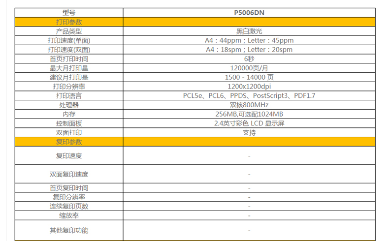 奔圖黑白激光打印機(jī) P5006DN 單位:臺(tái)