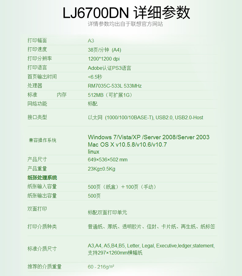 聯(lián)想激光打印機(jī) LJ6700DN 單位:臺