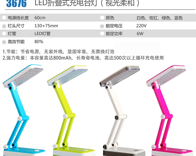 得力臺(tái)燈 3676 臺(tái)燈折疊便攜式可充電 單位:個(gè)