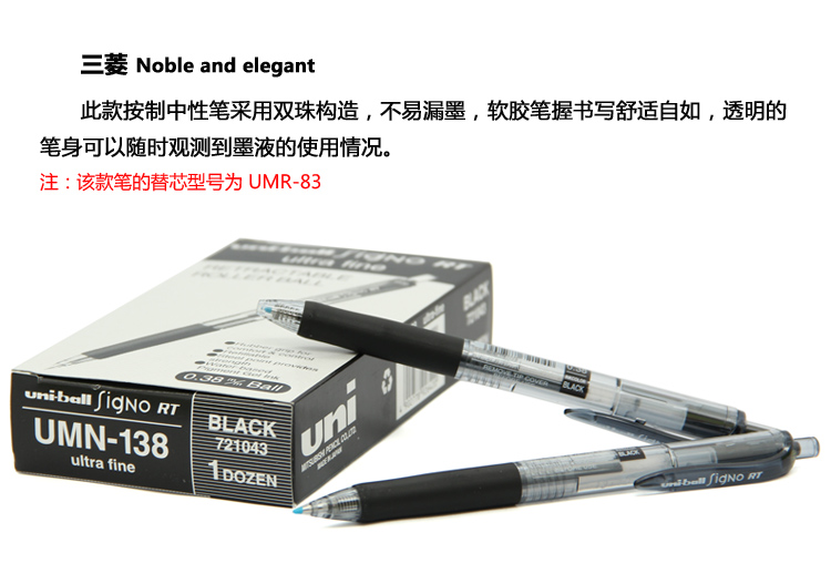 三菱 UMN-138 0.38mm 辦公按動簽字筆 單位:盒