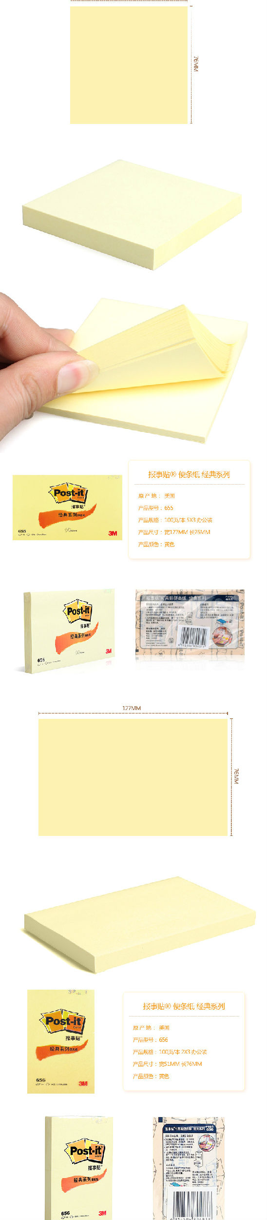 3M報(bào)事貼 654 規(guī)格76*76 黃色 單位:12本/包
