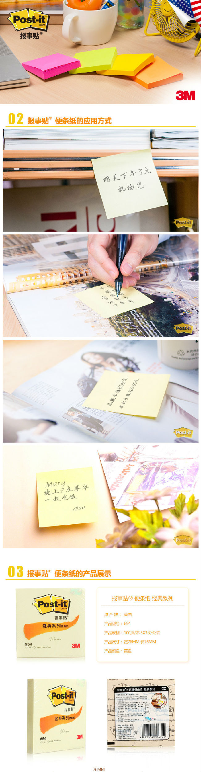 3M報(bào)事貼 656 規(guī)格51*76 黃色 單位:12本/包