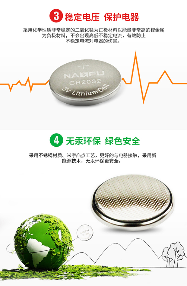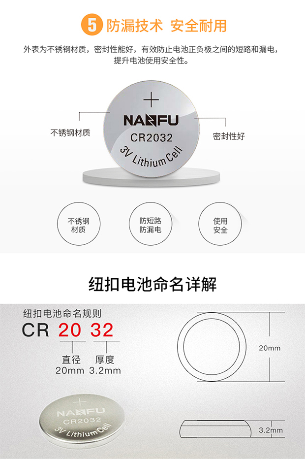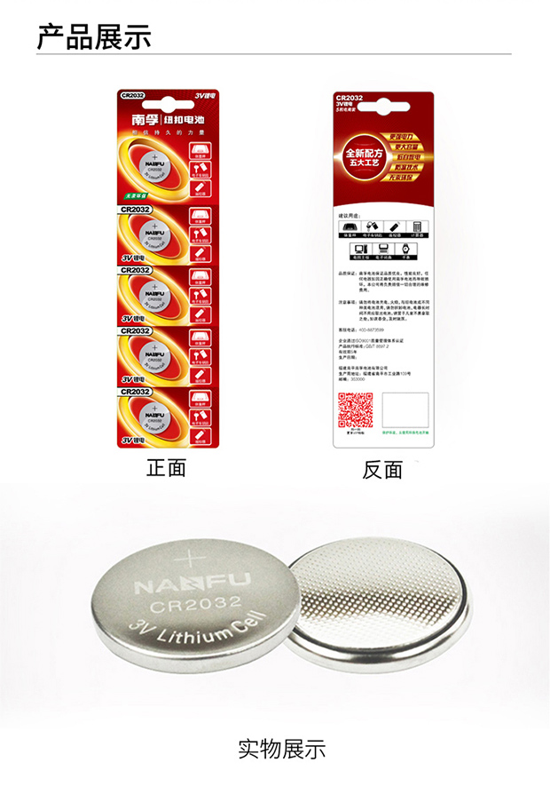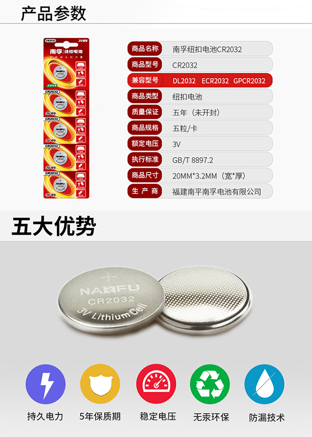 南孚電池 CR2032 紐扣電池3V鋰電池5粒 單位:卡