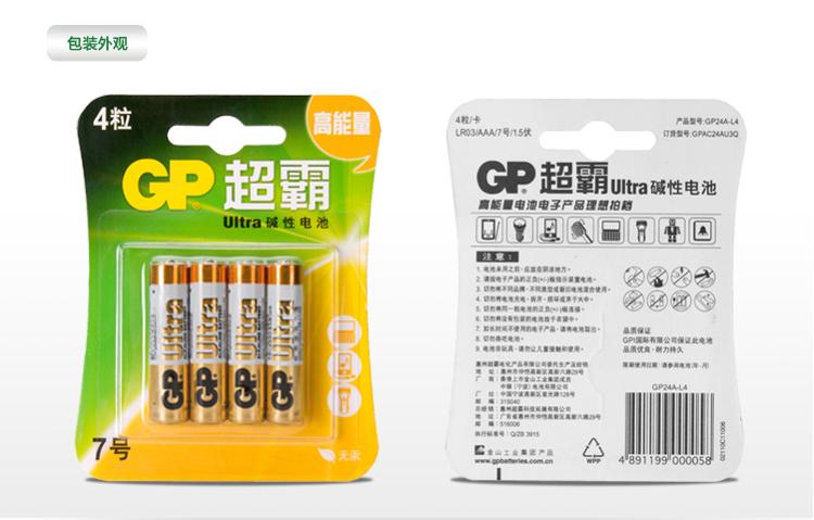 超霸電池 7號(hào)堿性電池4粒/卡 單位:卡