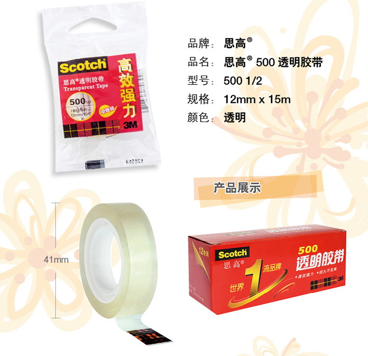 3M思高透明膠帶 12MM*15M 單位:12卷/盒