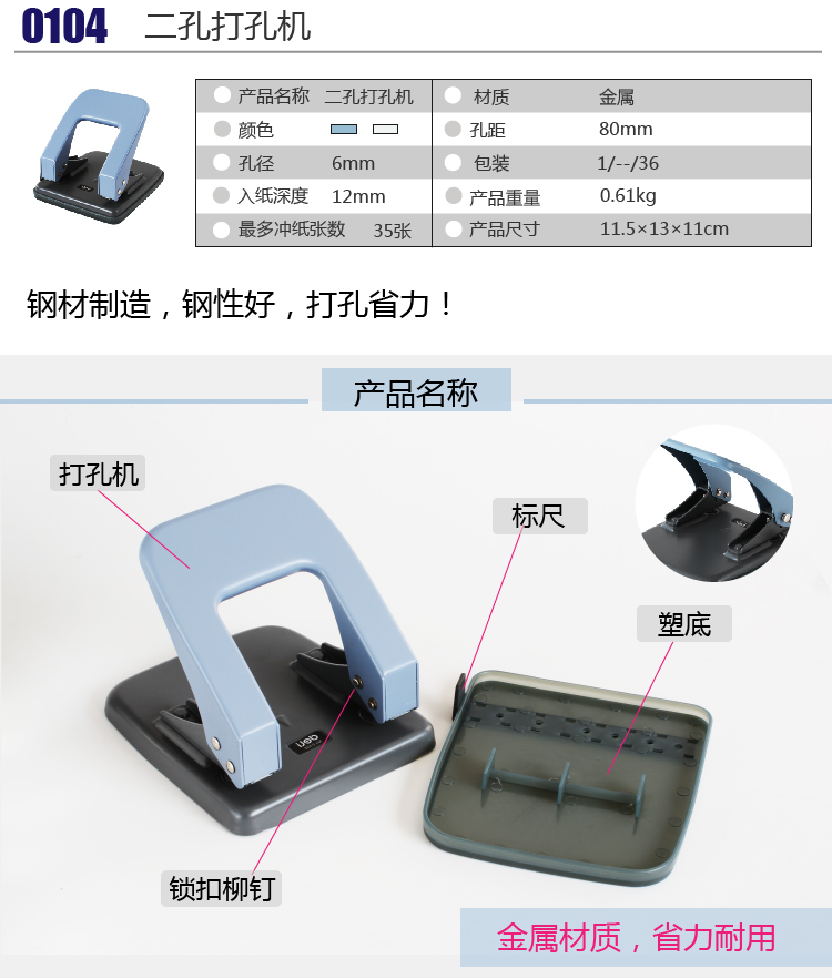 得力打孔器 0104 大號兩孔φ6mm 單位:個