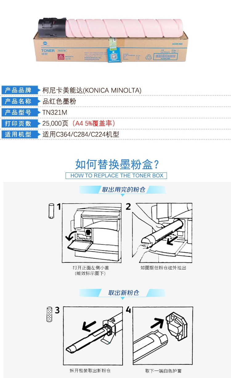 柯尼卡美能達(dá)墨粉 TN321M 紅色 單位:支