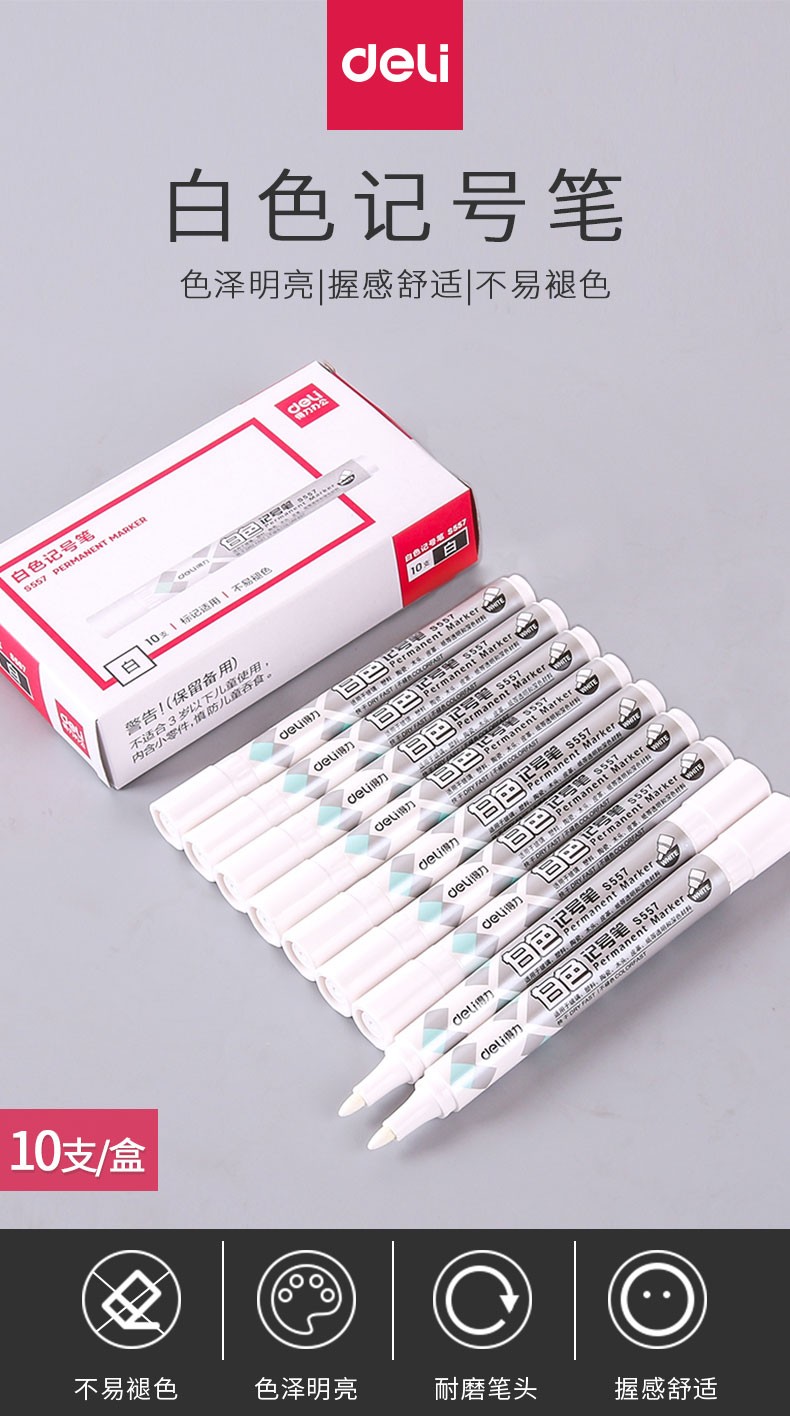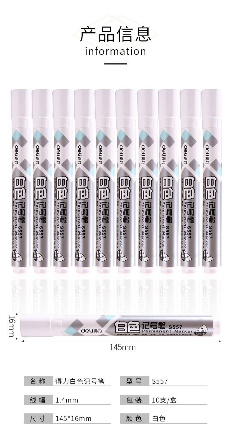 得力記號(hào)筆 S557 白色 單位:10只/盒裝