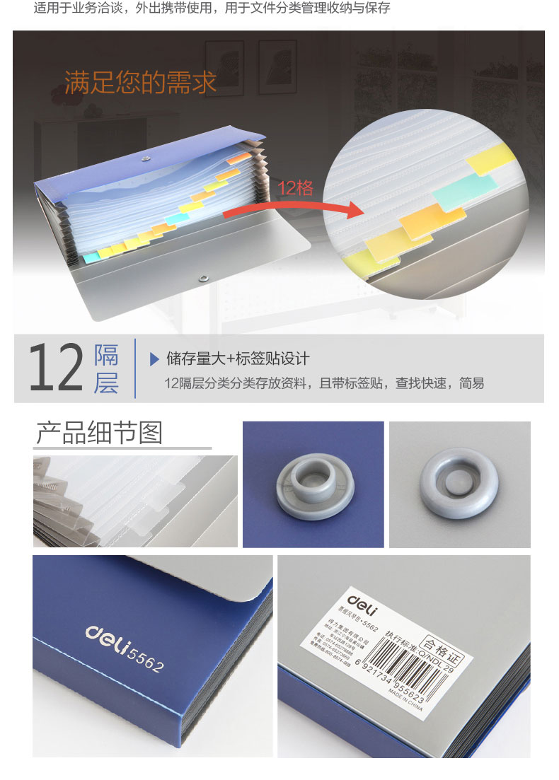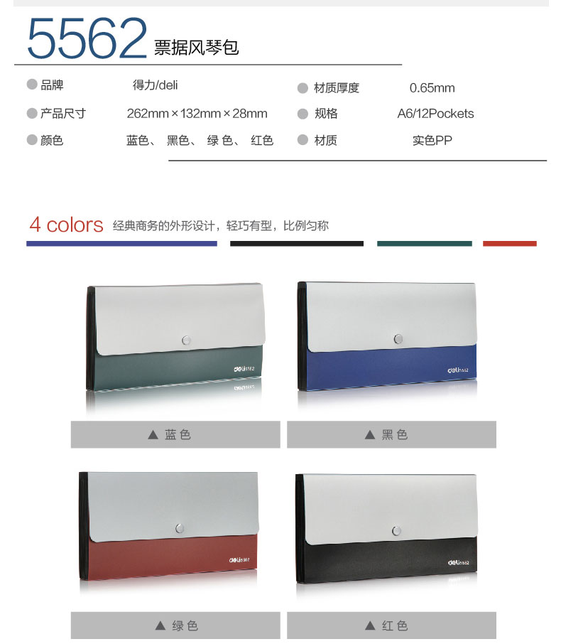 得力風琴包 5562 顏色隨機 單位:支
